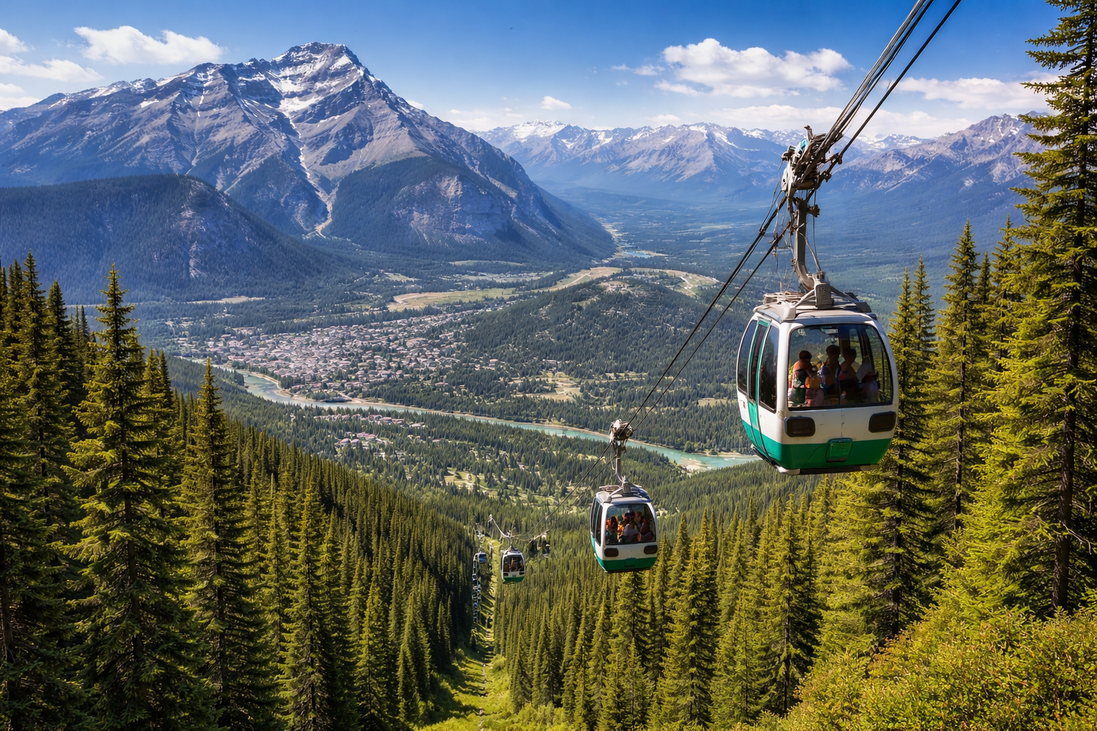 Ride to the summit of Sulphur Mountain for breathtaking panoramic views of Banff town, Bow Valley, and surrounding peaks.