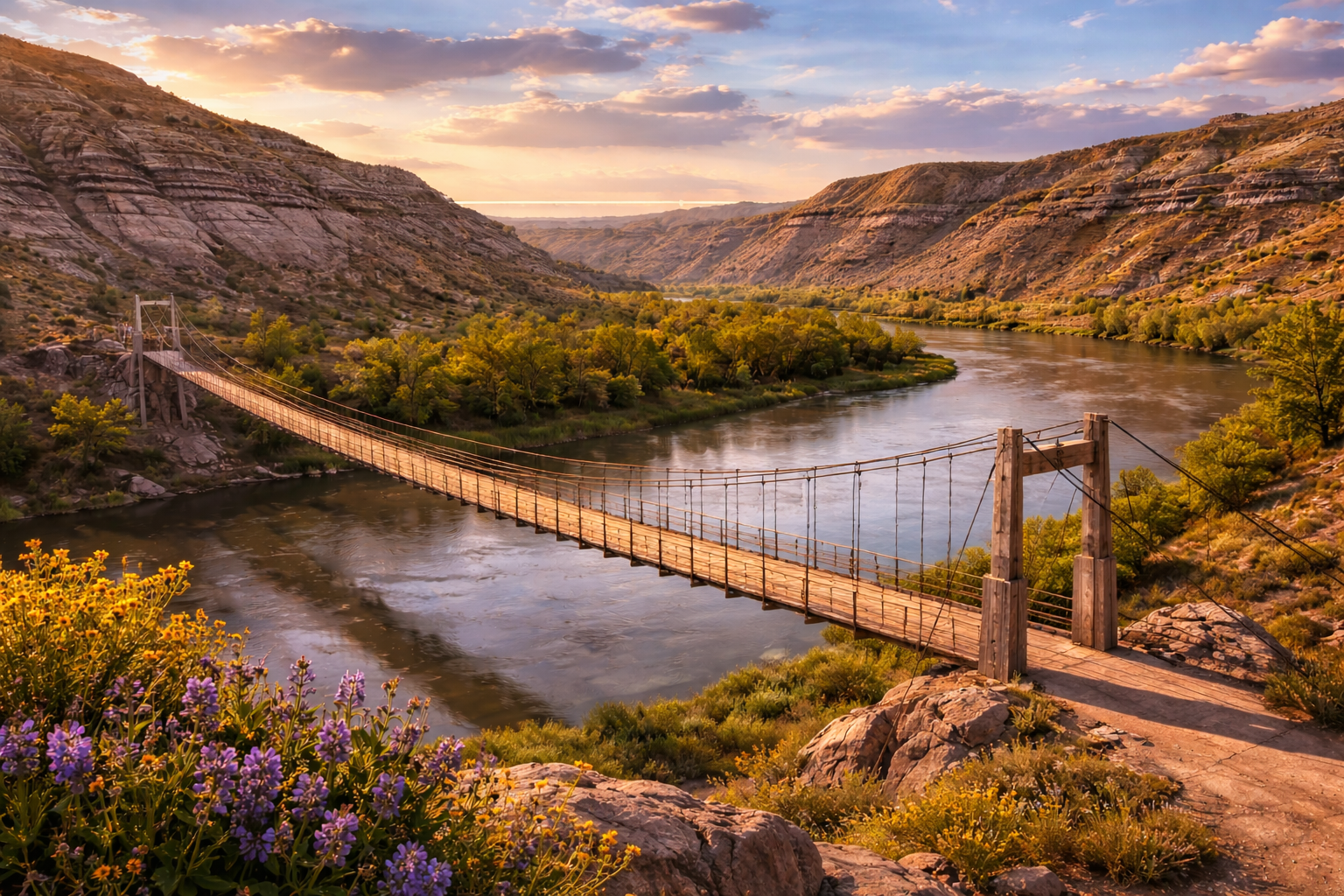 Cross this scenic suspension bridge and enjoy breathtaking views of the Red Deer River Valley and surrounding Badlands.